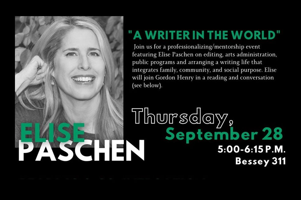 Join us for a professionalizing/mentorship event featuring Elise Paschen on editing, arts administration, public programs and arranging a writing life that integrates family, community, and social purpose.