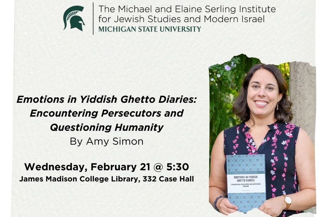 Dr. Simon will discuss her new book which uses an empathic reading of Yiddish diarists’ feelings, evaluations, and assessments about persecutors in the Warsaw, Lodz, and Vilna ghettos to present an emotional history of persecution in the Nazi ghettos. Dr. Amy Simon holds the William and Audrey Farber Family Chair in Holocaust Studies and European Jewish History at MSU.