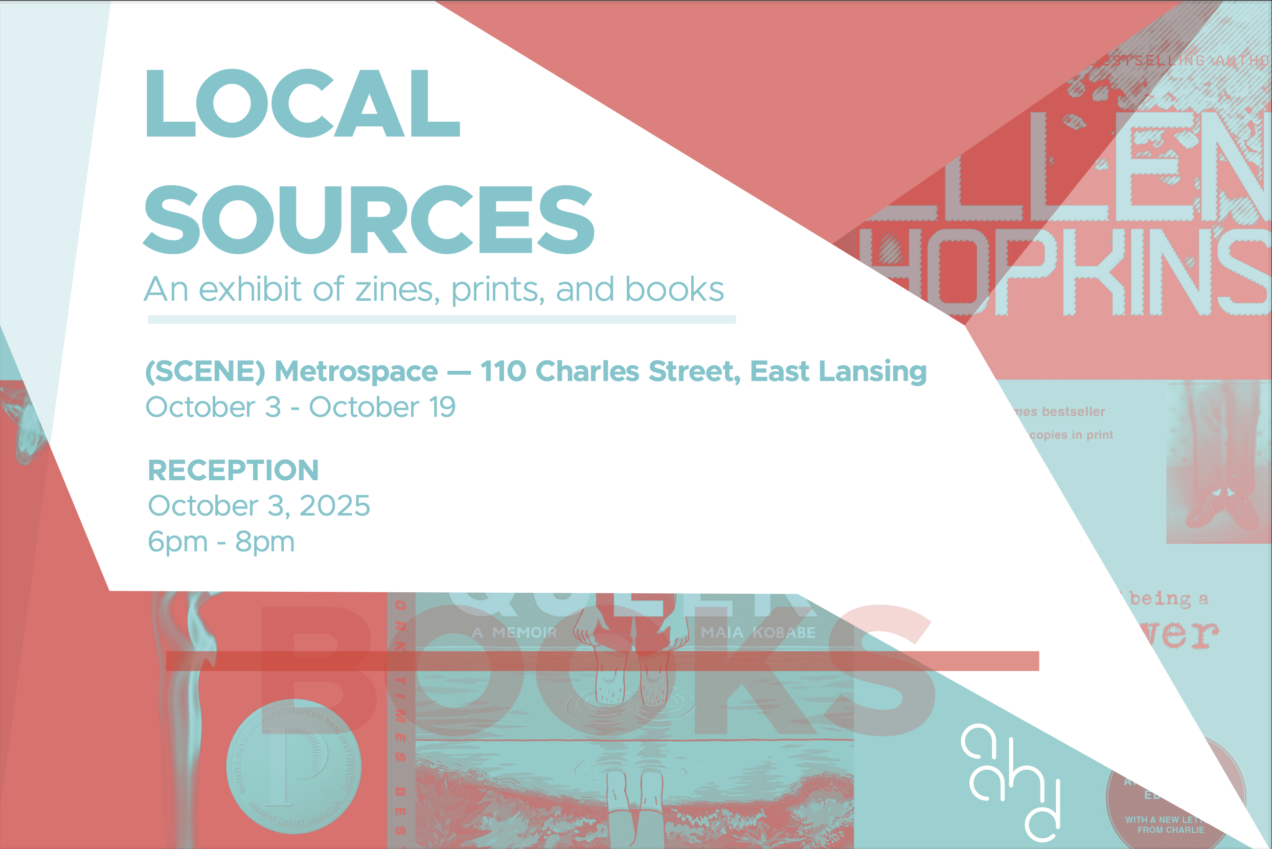 Local Sources is curated by Jimmy “Soup” Coyer and Laurén Gerig. Special thanks to Masaki Takahashi for the curation of poetry books. This exhibition is made possible by the MSU Department of Art, Art History, and Design, the City of East Lansing, and Ultra Mega.